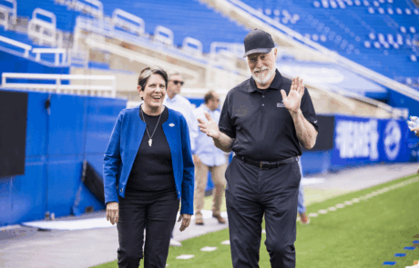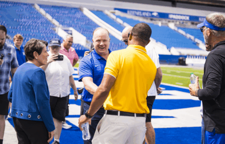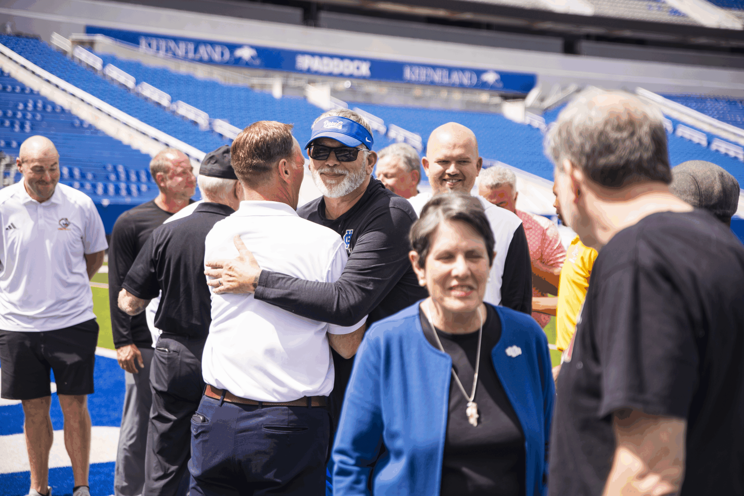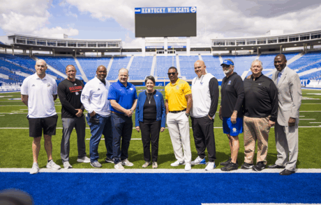 To kick off Football Week, we gathered Lexington Mayor Linda Gorton, UK Head Coach Mark Stoops and the local high school football coaches for a unique photo opportunity in anticipation of Kentucky football’s home opener. A special statement was read by the Mayor for local media present to announce the celebration as part of 250Lex, and acknowledge the great tradition of football, past and present, in the city of Lexington.